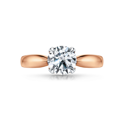 Кольцо с 1 бриллиантом природным, 1.01 карат, огранка круг 57 граней, цвет 2, чистота 7, тип огранки А; Розовое золото 585 пробы.