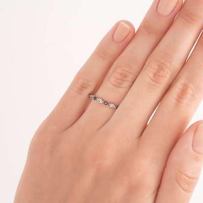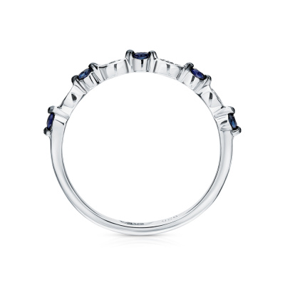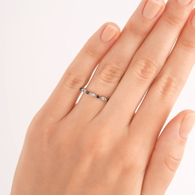 Кольцо с 4 бриллиантами природными, 0.01 карат, огранка круг 17 граней, цвет 2, чистота 4, тип огранки Б; 5 сапфирами, 0.15 карат, чистота 2; Серебро 925 пробы.