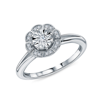 Кольцо с 17 бриллиантами выращенными, 0.08 карат, огранка круг 57 граней, цвет 3, чистота 5; Серебро 925 пробы.