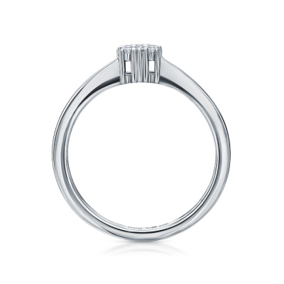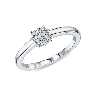 Кольцо с 9 бриллиантами выращенными, 0.07 карат, огранка круг 57 граней, цвет 3, чистота 5; Серебро 925 пробы.