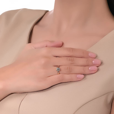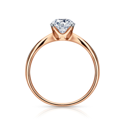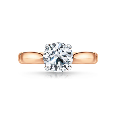 Кольцо с 1 бриллиантом природным, 1.2 карат, огранка круг 57 граней, цвет 2, чистота 5, тип огранки А; Розовое золото 585 пробы.