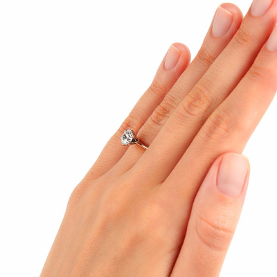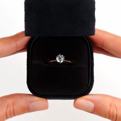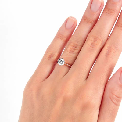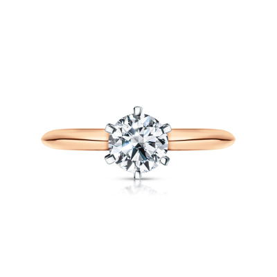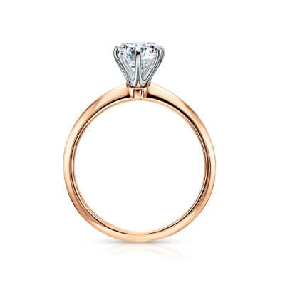 Кольцо с 1 бриллиантом природным, 0.9 карат, огранка круг 57 граней, цвет 3, чистота 6, тип огранки А; Розовое и белое золото 585 пробы.