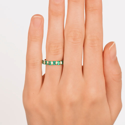 Кольцо с 9 изумрудами выращенными Колумбия, 1.06 карат; Желтое золото 585 пробы.