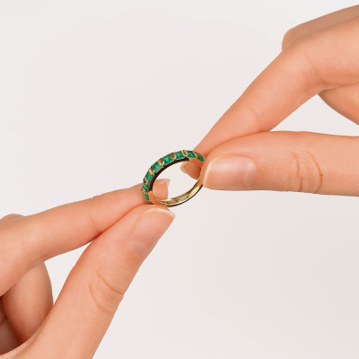 Золотое кольцо с изумрудами выращенными