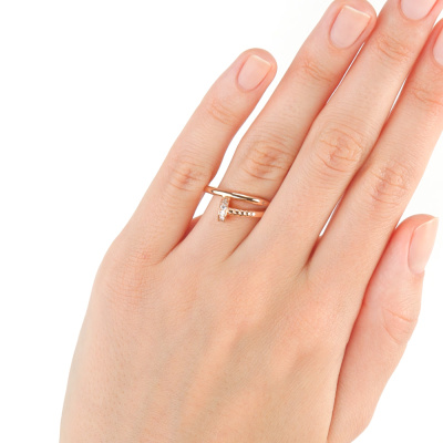Кольцо с 11 бриллиантами природными, 0.15 карат, огранка круг 57 граней, цвет 3, чистота 6, тип огранки А; 3 бриллиантами природными, 0.005 карат, огранка круг 17 граней, цвет 2, чистота 2, тип огранки А; Розовое золото 585 пробы.
