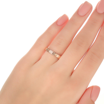 Кольцо с 76 бриллиантами природными, 0.16 карат, огранка круг 17 граней, цвет 2, чистота 2, тип огранки А; Розовое золото 585 пробы.