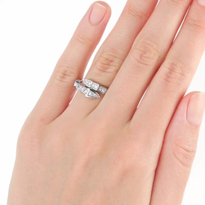 Кольцо с 2 бриллиантами природными, 0.04 карат, огранка круг 57 граней, цвет 3, чистота 6, тип огранки А; 17 бриллиантами природными, 0.23 карат, огранка круг 57 граней, цвет 3, чистота 6, тип огранки А; 18 бриллиантами природными, 0.12 карат, огранка круг 57 граней, цвет 3, чистота 6, тип огранки А; 2 бриллиантами природными, 0.008 карат, огранка круг 17 граней, цвет 2, чистота 3, тип огранки А; Белое золото 585 пробы.