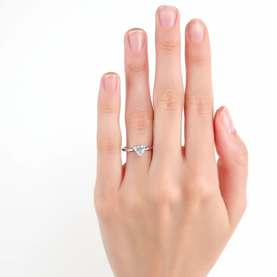 Кольцо с 1 бриллиантом выращенным, 0.84 карат, огранка сердце 57 граней, цвет 4, чистота 5, тип огранки А; Белое золото 585 пробы.