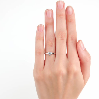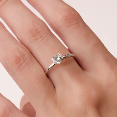Кольцо с 1 бриллиантом выращенным, 0.56 карат, огранка сердце 57 граней, цвет 3, чистота 5, тип огранки А; Белое золото 585 пробы.