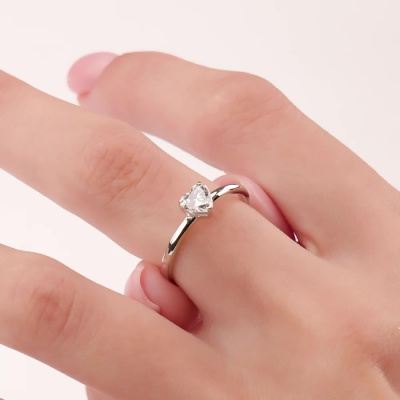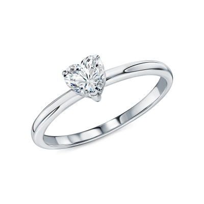 Кольцо с 1 бриллиантом выращенным, 0.44 карат, огранка сердце 57 граней, цвет 4, чистота 5, тип огранки А; Белое золото 585 пробы.
