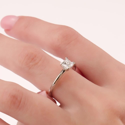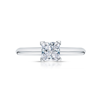Кольцо с 1 бриллиантом выращенным, 0.57 карат, огранка принцесса 65 граней, цвет 4, чистота 5, тип огранки А; Белое золото 585 пробы.
