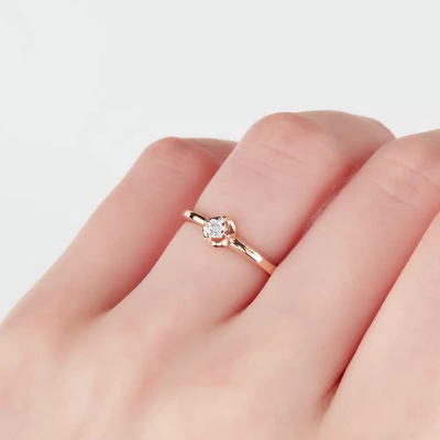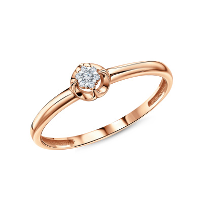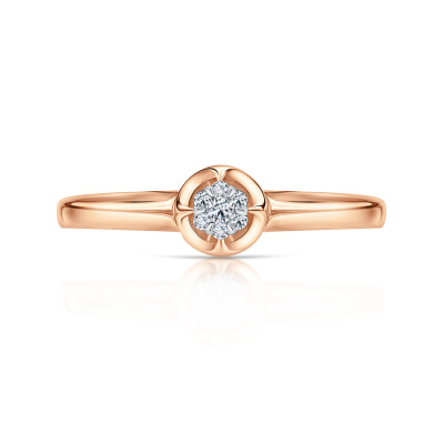 Кольцо с 1 бриллиантом природным, 0.01 карат, огранка круг 57 граней, цвет 4, чистота 5, тип огранки А; 6 бриллиантами природными, 0.02 карат, огранка круг 57 граней, цвет 4, чистота 5, тип огранки А; Розовое золото 585 пробы.