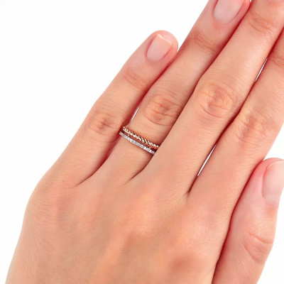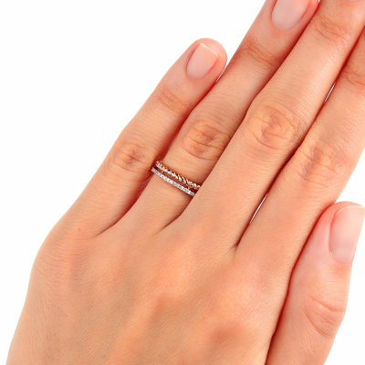 Кольцо с 21 бриллиантом природным, 0.06 карат, огранка круг 17 граней, цвет 2, чистота 2, тип огранки А; Розовое золото 585 пробы.