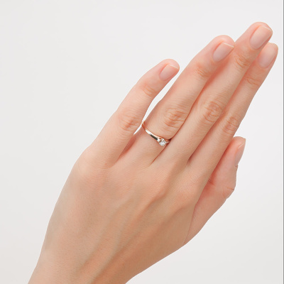 Кольцо с 1 бриллиантом природным, 0.09 карат, огранка круг 57 граней, цвет 3, чистота 6, тип огранки А; Розовое золото 585 пробы.