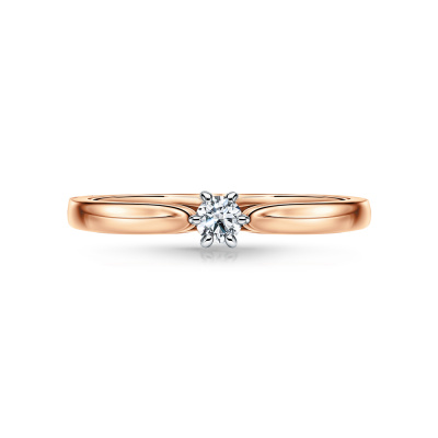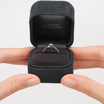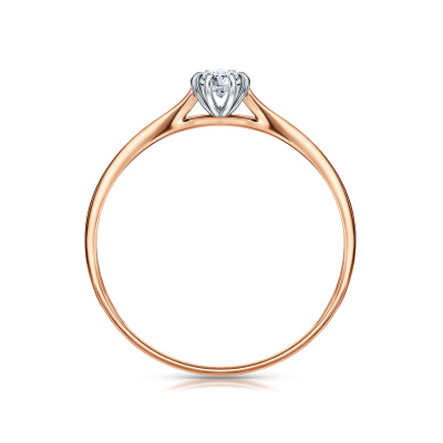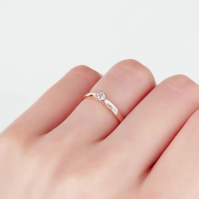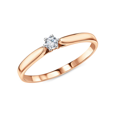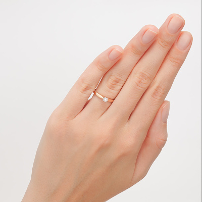 Кольцо с 1 бриллиантом природным, 0.09 карат, огранка круг 57 граней, цвет 3, чистота 6, тип огранки А; Розовое золото 585 пробы.