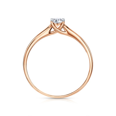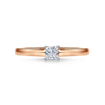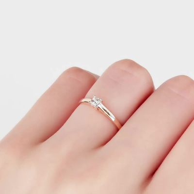 Кольцо с 1 бриллиантом природным, 0.15 карат, огранка принцесса 65 граней, цвет 3, чистота 6, тип огранки А; Розовое золото 585 пробы.