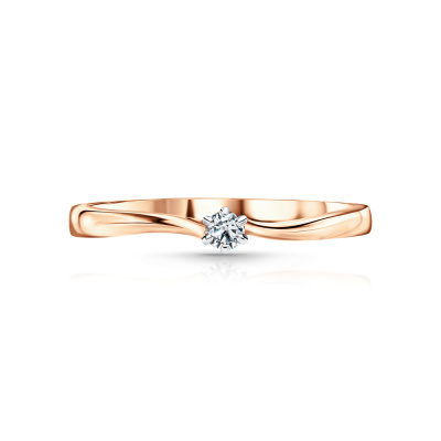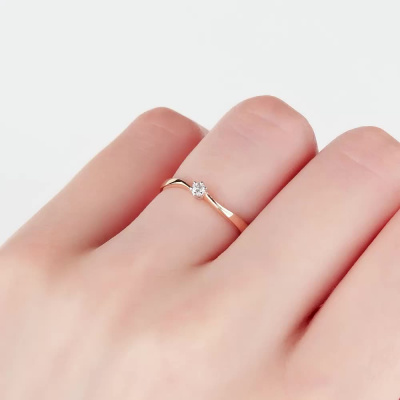 Кольцо с 1 бриллиантом природным, 0.05 карат, огранка круг 57 граней, цвет 3, чистота 6, тип огранки А; Розовое золото 585 пробы.