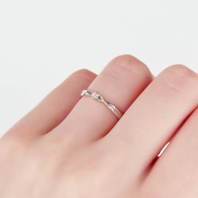 Кольцо с 1 бриллиантом природным, 0.05 карат, огранка круг 57 граней, цвет 3, чистота 6, тип огранки А; Белое золото 585 пробы.