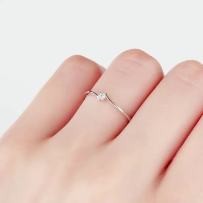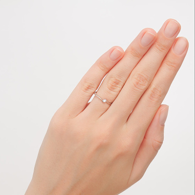 Кольцо с 1 бриллиантом природным, 0.02 карат, огранка круг 57 граней, цвет 3, чистота 6, тип огранки А; Белое золото 585 пробы.