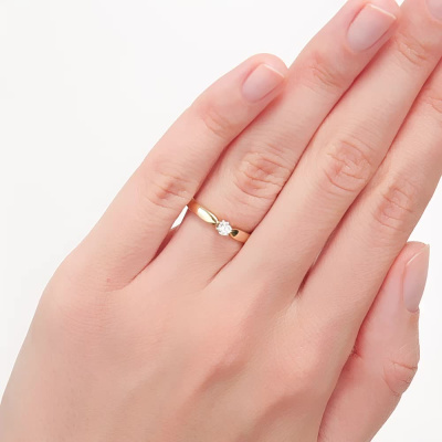 Кольцо с 1 бриллиантом природным, 0.11 карат, огранка круг 57 граней, цвет 3, чистота 6, тип огранки А; Желтое золото 585 пробы.