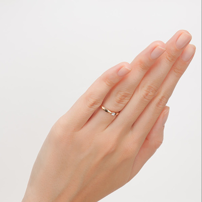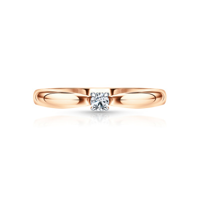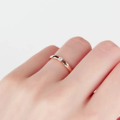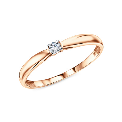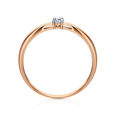 Кольцо с 1 бриллиантом природным, 0.06 карат, огранка круг 57 граней, цвет 3, чистота 6, тип огранки А; Розовое золото 585 пробы.