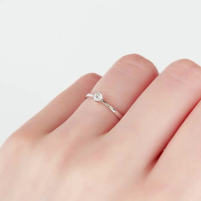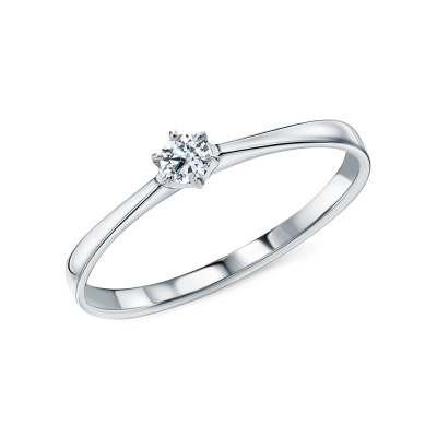 Кольцо с 1 бриллиантом природным, 0.11 карат, огранка круг 57 граней, цвет 3, чистота 6, тип огранки А; Белое золото 585 пробы.