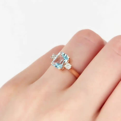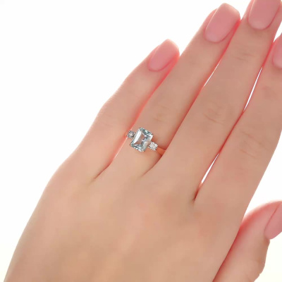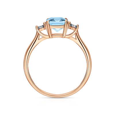 Кольцо с 2 бриллиантами природными, 0.01 карат, огранка круг 17 граней, цвет 2, чистота 2, тип огранки А; 1 топазом скай природным, 1.88 карат; Розовое и белое золото 585 пробы.