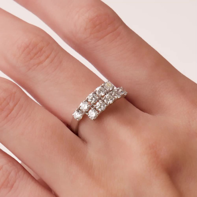 Кольцо с 10 бриллиантами выращенными, 0.78 карат, огранка круг 57 граней, цвет 3, чистота 6, тип огранки А; Белое золото 585 пробы.