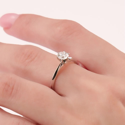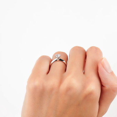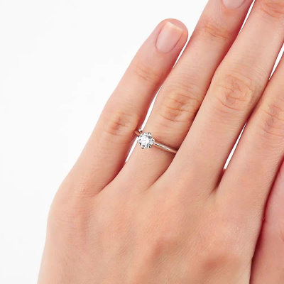 Кольцо с 1 бриллиантом выращенным, 0.46 карат, огранка круг 57 граней, цвет 4, чистота 6, тип огранки А; Белое золото 585 пробы.