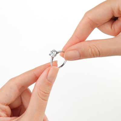 Кольцо с 1 бриллиантом выращенным, 1.52 карат, огранка круг 57 граней, цвет 4, чистота 5, тип огранки А; 16 бриллиантами выращенными, 0.21 карат, огранка круг 57 граней, цвет 3, чистота 5, тип огранки А; Белое золото 585 пробы.