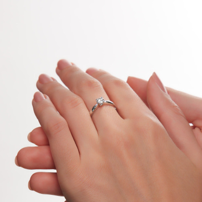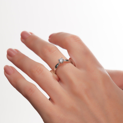 Кольцо с 1 бриллиантом выращенным, 0.35 карат, огранка круг 57 граней, цвет 4, чистота 5, тип огранки А; Белое золото 585 пробы.