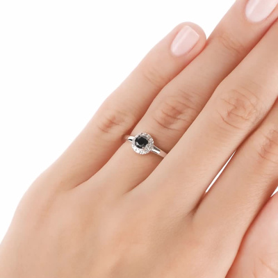 Кольцо с 12 бриллиантами природными, 0.12 карат, огранка круг 17 граней, цвет 2, чистота 3; 1 сапфиром природным, 0.3 карат, цвет 3, чистота 4; Белое золото 585 пробы.