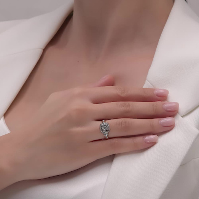 Кольцо с 1 бриллиантом природным, 0.06 карат, огранка круг 57 граней, цвет 3, чистота 6, тип огранки А; 6 бриллиантами природными, 0.18 карат, огранка круг 57 граней, цвет 3, чистота 6, тип огранки А; 2 бриллиантами природными, 0.01 карат, огранка круг 57 граней, цвет 3, чистота 6, тип огранки А; 24 бриллиантами природными, 0.1 карат, огранка круг 17 граней, цвет 2, чистота 2, тип огранки А; Розовое и белое золото 585 пробы.