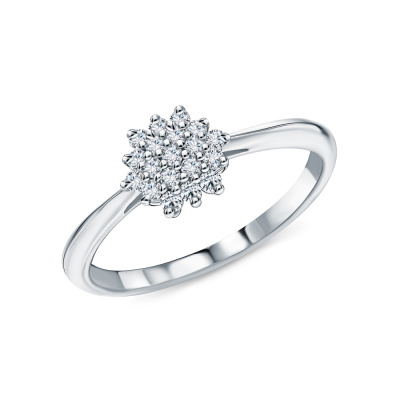 Кольцо с 19 бриллиантами выращенными, 0.19 карат, огранка круг 57 граней, цвет 2, чистота 5; Серебро 925 пробы.