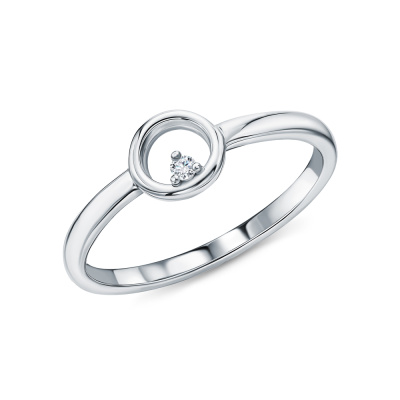 Кольцо с 1 бриллиантом выращенным, 0.01 карат, огранка круг 57 граней, цвет 2, чистота 5; Серебро 925 пробы.