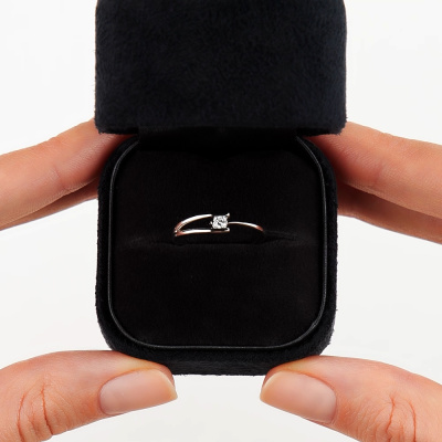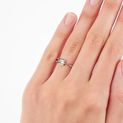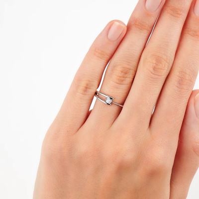 Кольцо с 1 бриллиантом выращенным, 0.1 карат, огранка круг 57 граней, цвет 2, чистота 5, тип огранки А; Серебро 925 пробы.