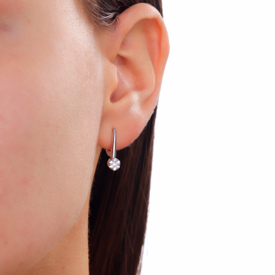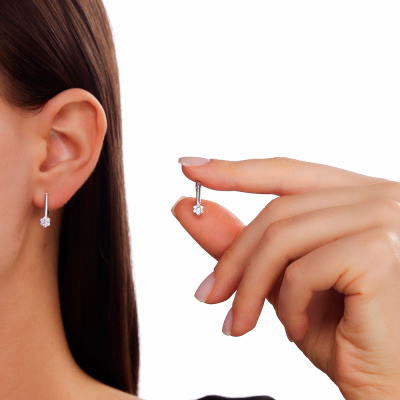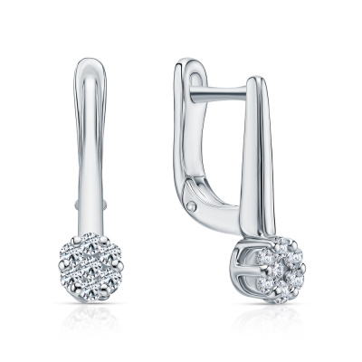 Серьги с 2 бриллиантами выращенными, 0.04 карат, огранка круг 57 граней, цвет 2, чистота 5; 12 бриллиантами выращенными, 0.18 карат, огранка круг 57 граней, цвет 2, чистота 5; Серебро 925 пробы.
