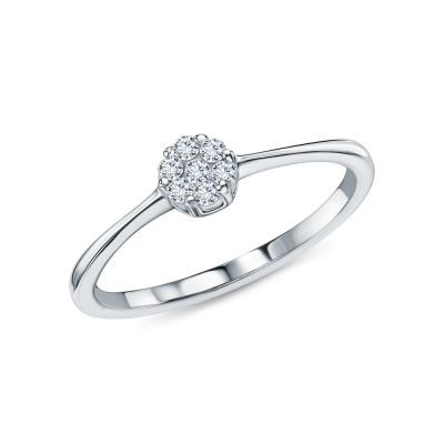 Кольцо с 1 бриллиантом выращенным, 0.02 карат, огранка круг 57 граней, цвет 2, чистота 5, тип огранки А; 6 бриллиантами выращенными, 0.09 карат, огранка круг 57 граней, цвет 2, чистота 5, тип огранки А; Серебро 925 пробы.