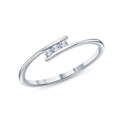 Кольцо с 3 бриллиантами выращенными, 0.06 карат, огранка круг 57 граней, цвет 2, чистота 5, тип огранки А; Серебро 925 пробы.