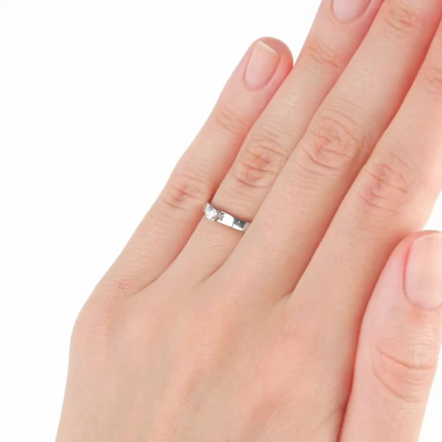 Кольцо с 1 бриллиантом природным, 0.07 карат, огранка круг 57 граней, цвет 3, чистота 6, тип огранки А; Платина 950 пробы.