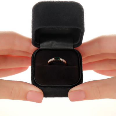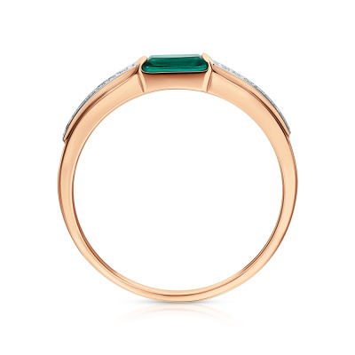 Кольцо с 14 бриллиантами природными, 0.04 карат, огранка круг 17 граней, цвет 2, чистота 2, тип огранки А; 1 гидротермальным изумрудом, 0.23 карат; Розовое золото 585 пробы.
