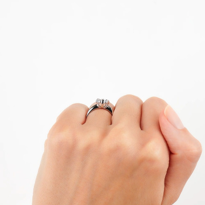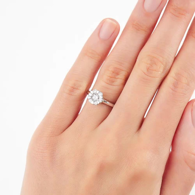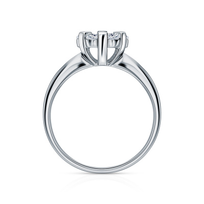 Кольцо с 1 бриллиантом выращенным, 0.19 карат, огранка круг 57 граней, цвет 3, чистота 6, тип огранки А; 6 бриллиантами выращенными, 0.27 карат, огранка круг 57 граней, цвет 3, чистота 6, тип огранки А; Белое золото 585 пробы.