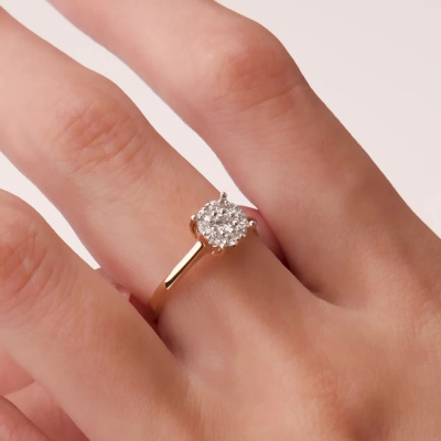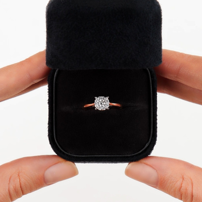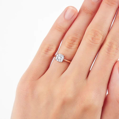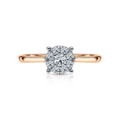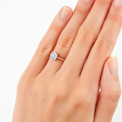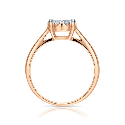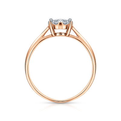 Кольцо с 1 бриллиантом выращенным, 0.1 карат, огранка круг 57 граней, цвет 3, чистота 6, тип огранки А; 8 бриллиантами выращенными, 0.15 карат, огранка круг 57 граней, цвет 3, чистота 6, тип огранки А; Розовое золото 585 пробы.