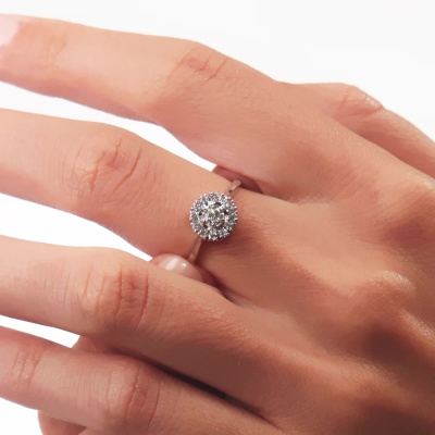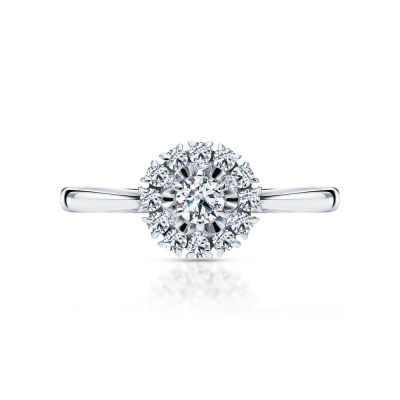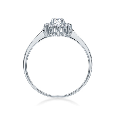 Кольцо с 1 бриллиантом выращенным, 0.16 карат, огранка круг 57 граней, цвет 3, чистота 6, тип огранки А; 12 бриллиантами выращенными, 0.2 карат, огранка круг 57 граней, цвет 3, чистота 6, тип огранки А; Белое золото 585 пробы.