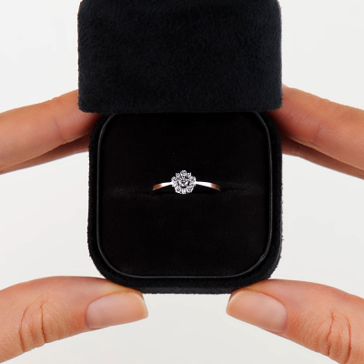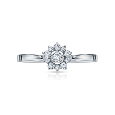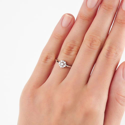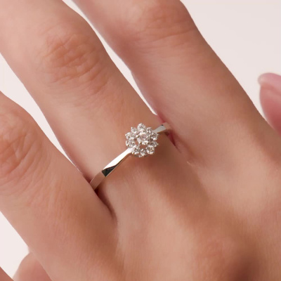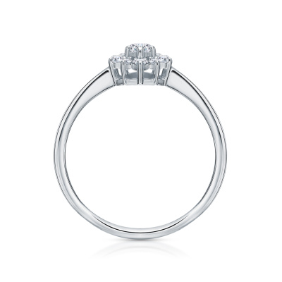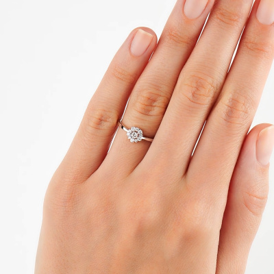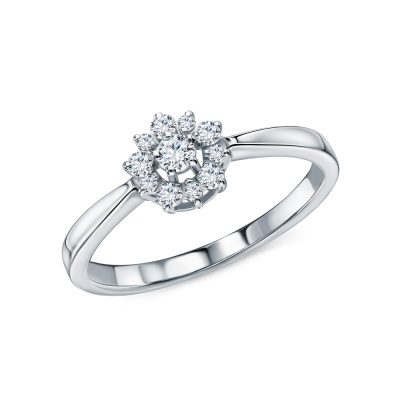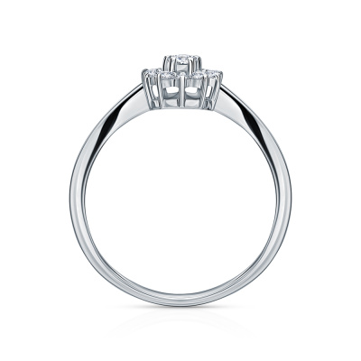 Кольцо с 1 бриллиантом выращенным, 0.05 карат, огранка круг 57 граней, цвет 3, чистота 6, тип огранки А; 5 бриллиантами выращенными, 0.08 карат, огранка круг 57 граней, цвет 3, чистота 6, тип огранки А; 5 бриллиантами выращенными, 0.02 карат, огранка круг 57 граней, цвет 3, чистота 6, тип огранки А; Белое золото 585 пробы.