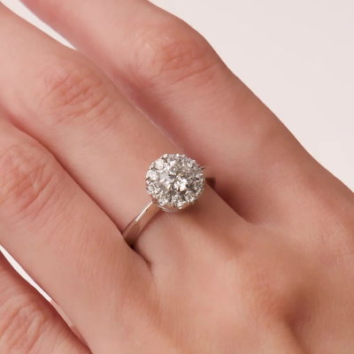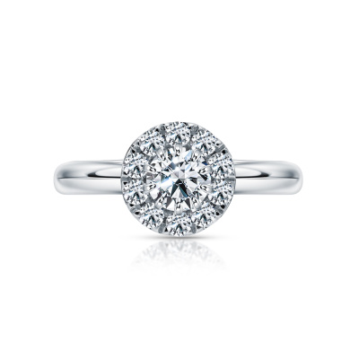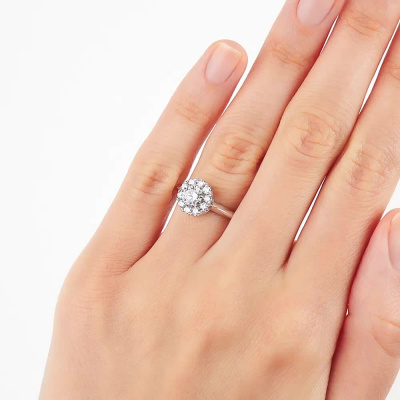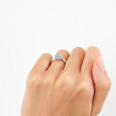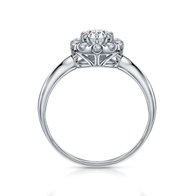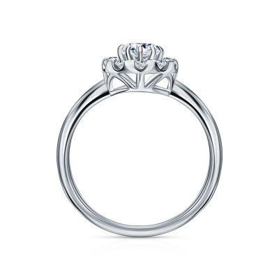 Кольцо с 1 бриллиантом выращенным, 0.51 карат, огранка круг 57 граней, цвет 3, чистота 6, тип огранки А; 10 бриллиантами выращенными, 0.28 карат, огранка круг 57 граней, цвет 3, чистота 6, тип огранки А; Белое золото 585 пробы.