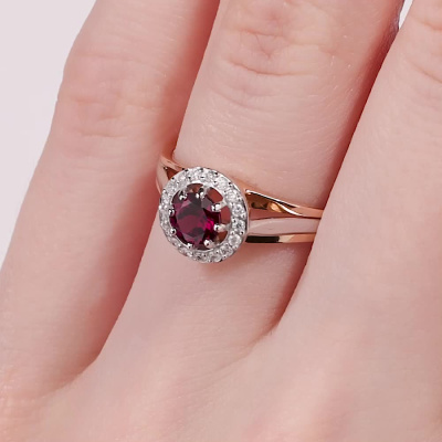 Кольцо с 17 бриллиантами природными, 0.13 карат, огранка круг 57 граней, цвет 3, чистота 6, тип огранки А; 1 турмалином розовым природным, 0.47 карат, тип огранки А; золото 585 пробы.