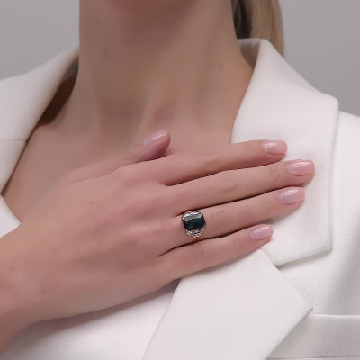 Золотое кольцо с топазом и бриллиантами