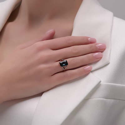 Кольцо с 10 бриллиантами природными, 0.05 карат, огранка круг 57 граней, цвет 4, чистота 4, тип огранки А; 1 топазом лондон природным, 5.06 карат, тип огранки А; Розовое золото 585 пробы.