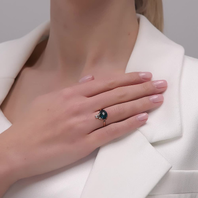 Кольцо с 2 бриллиантами природными, 0.02 карат, огранка круг 57 граней, цвет 3, чистота 6, тип огранки А; 1 топазом лондон природным, 3.23 карат, тип огранки А; Розовое золото 585 пробы.